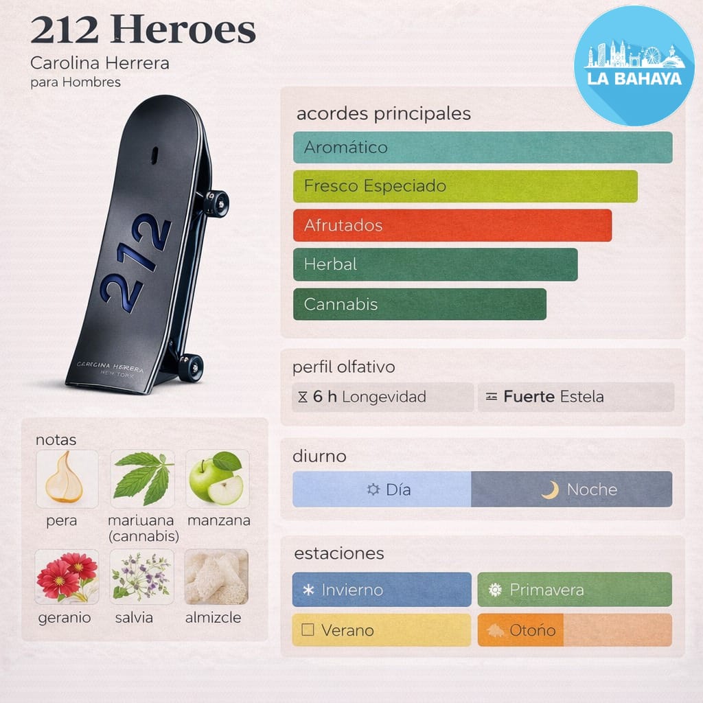 212 Men Heroes Forever Young es una fragancia masculina moderna, juvenil y vibrante, inspirada en la libertad, la amistad y el espíritu urbano de Nueva York. Tiene un aroma fresco–afrutado con fondo limpio y elegante, ideal para hombres auténticos, optimistas y con actitud relajada. Es versátil, fácil de usar y muy agradable.
