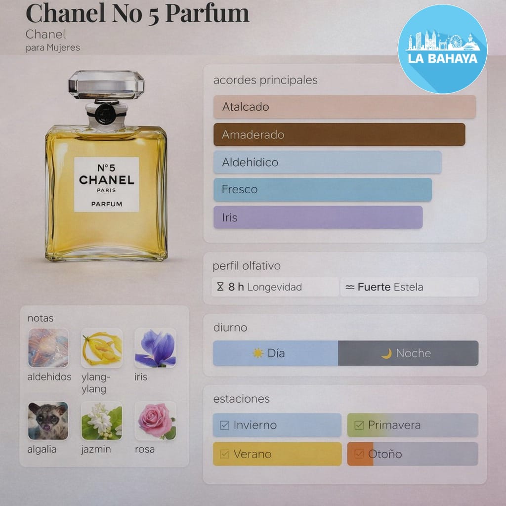 Chanel Nº5 es un perfume sofisticado, intenso y muy elegante, símbolo de feminidad y lujo desde hace décadas. Es una fragancia clásica y poderosa, con carácter floral-aldehídico, ideal para mujeres seguras, elegantes y con gusto por lo atemporal.