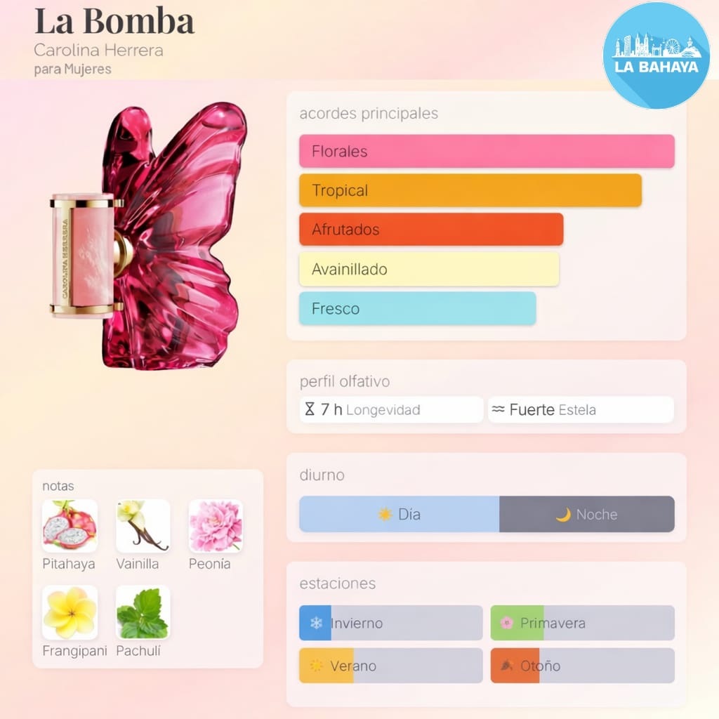 Es una fragancia dulce, femenina y explosiva . Tiene ese balance perfecto entre frutas jugosas, flores delicadas y un fondo cremoso que la hace irresistible y muy adictiva. Es coqueta, sensual y llena de actitud.